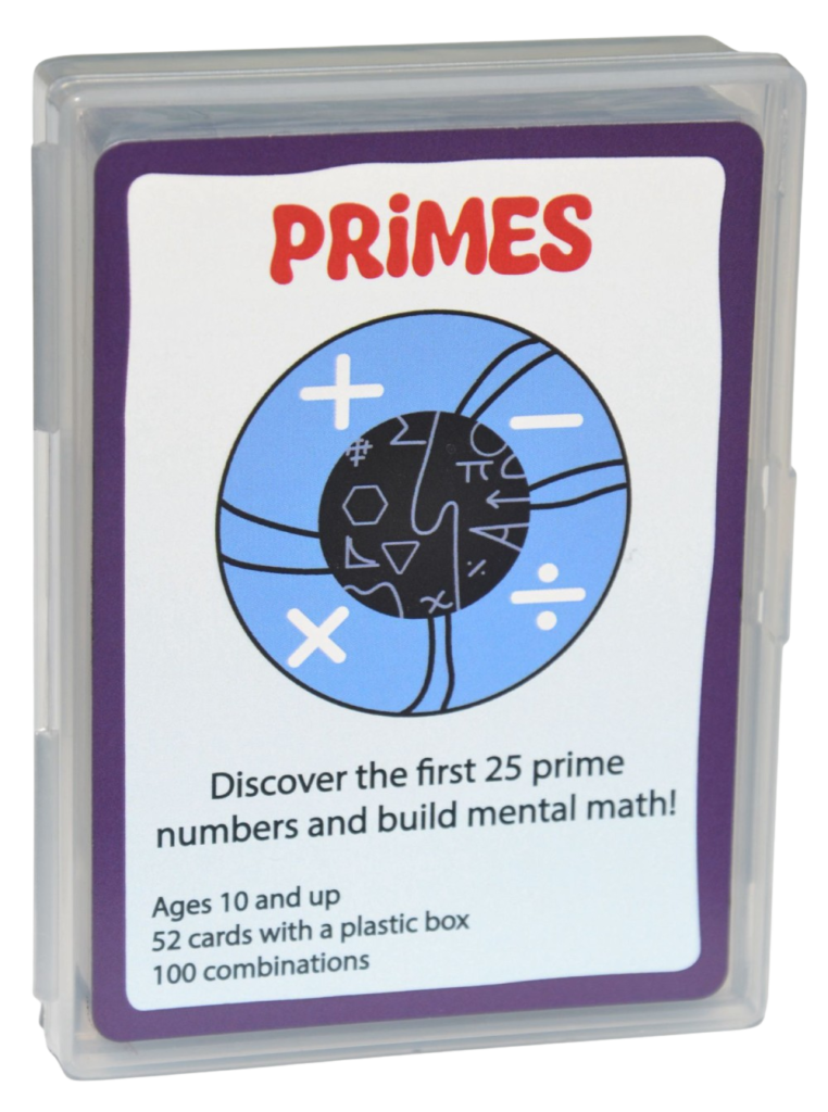 With its portable playing card size and a plastic box, PRIMES is an ideal companion for car rides or family game nights, making math fun and accessible.